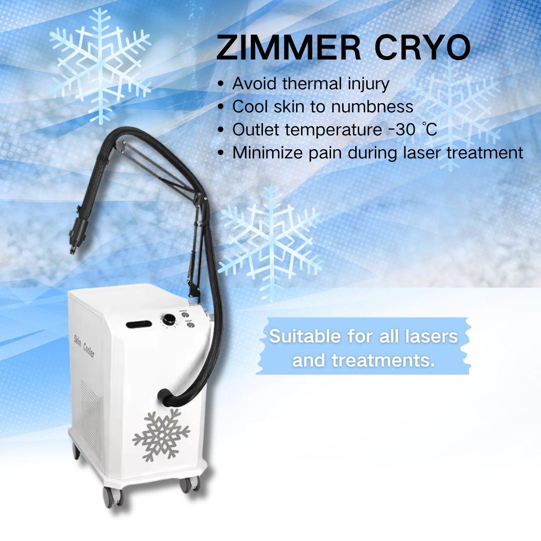 The Zimmer Cryo Machine is an advanced air cooling system designed to enhance patient comfort during laser treatments and aesthetic procedures. It effectively reduces skin temperature, minimizing pain and thermal injury. Ideal for laser hair removal, tattoo removal, RF treatments, and skin resurfacing, the Zimmer Cryo Machine ensures a more comfortable experience for both patients and practitioners.